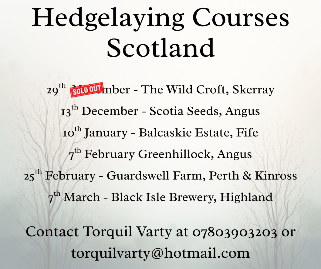 Angus Boundaries are running several hedgelaying courses this season across Scotland. Contact Torquil directly for more info and to book: torquilvarty@hotmail.com or 07803903203.